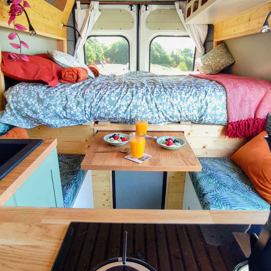 Description of Beds: Bean is a spacious two berth campervan. The fixed double bed is 135cm x 190cm and is topped with a proper mattress.